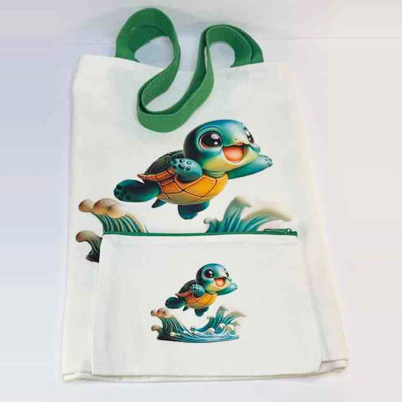 Green & Blue Turtle Tote Bag with a Pouch