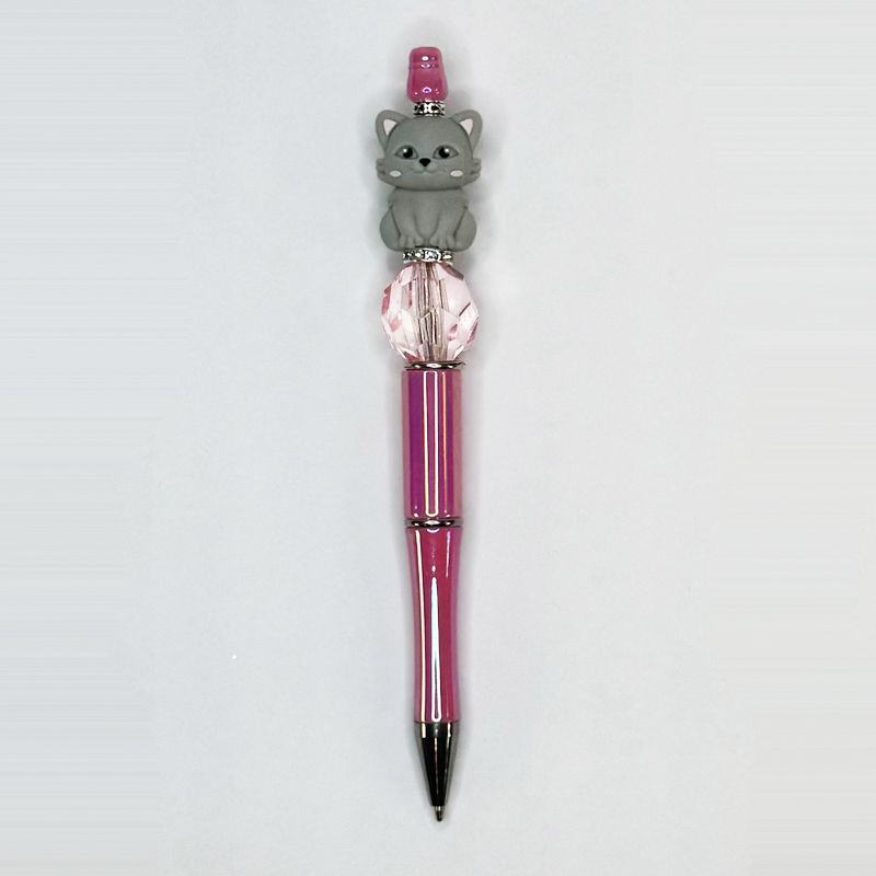 Grey Cat with Pink Acrylic Crystal Bead – Pink Pen