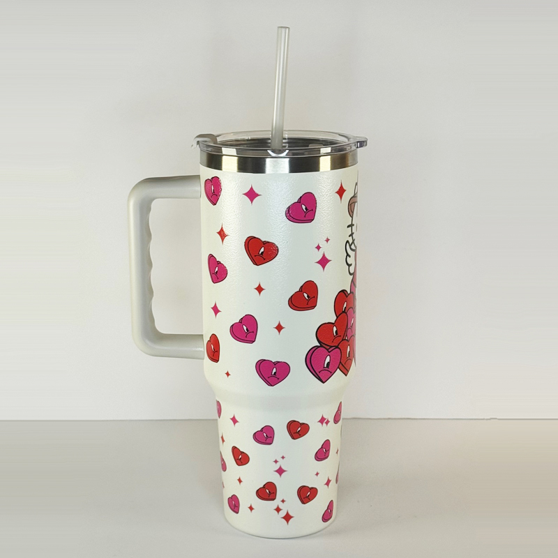 Hello Kitty with Pink & Red Hearts – White 40 oz Tumbler