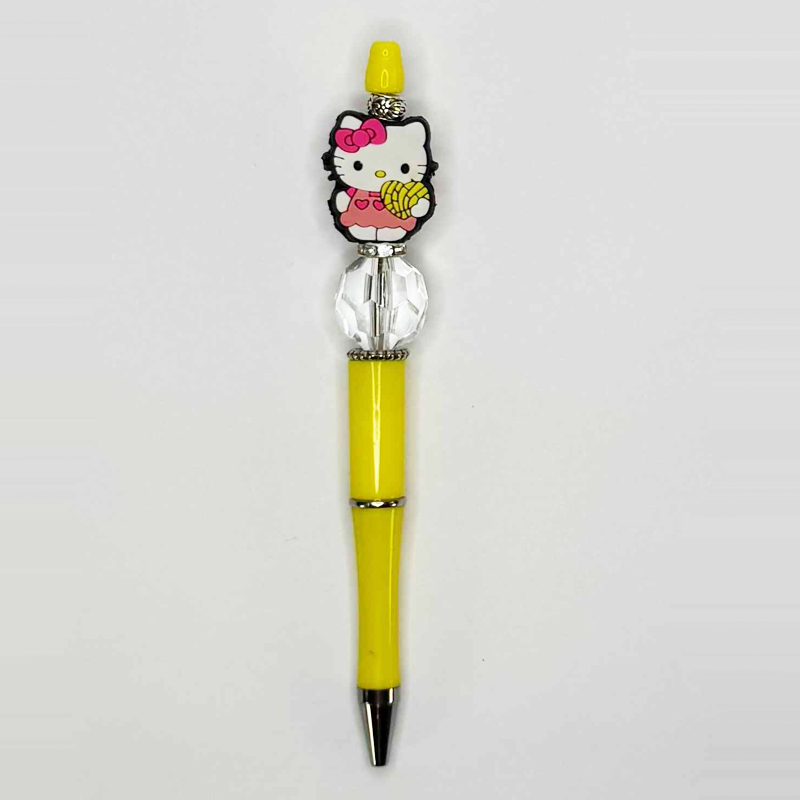 Hello Kitty with Yellow Heart with Clear Acrylic Crystal Bead – Yellow Pen