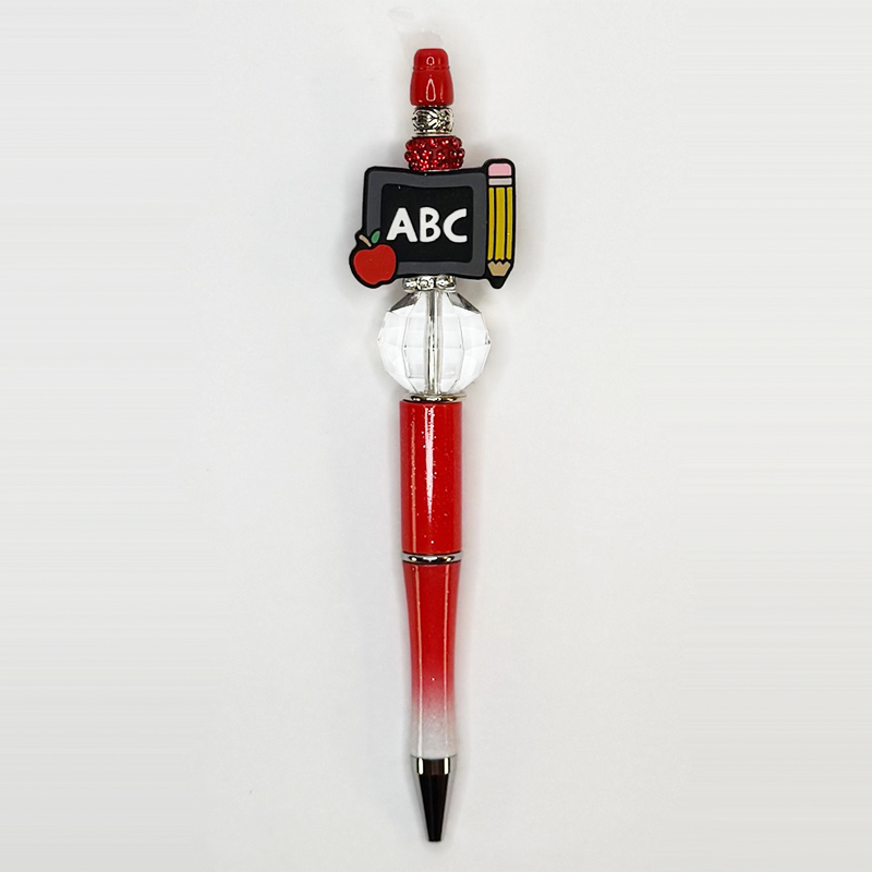 Teacher – ABC Silicone Bead with Clear Acrylic Crystal Bead Character Pen