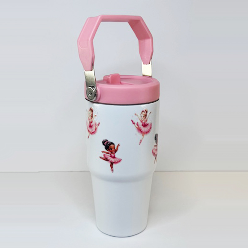 White Ballerina Tumbler With Pink Lid Pink – Front & Left View